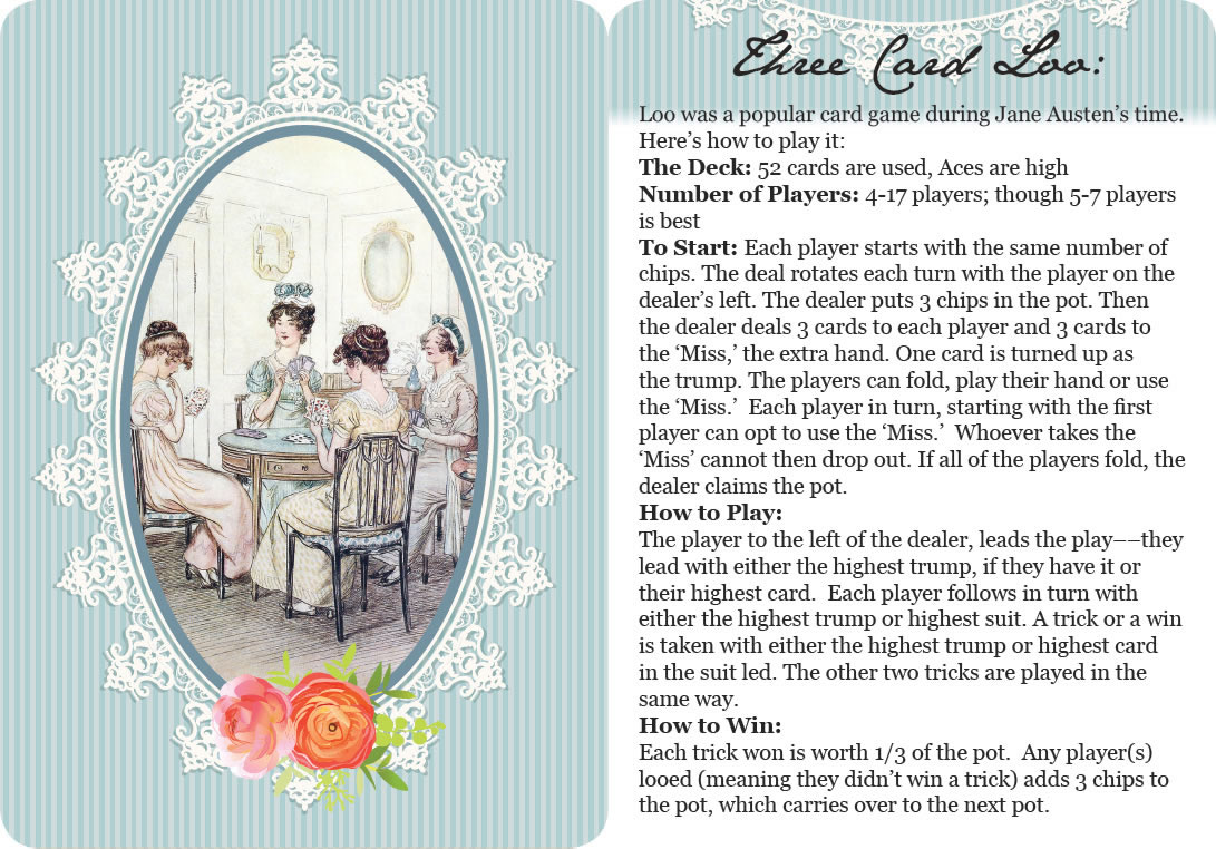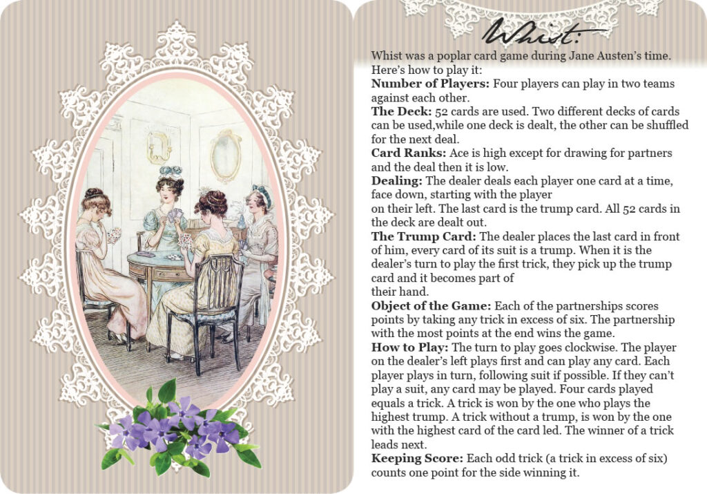 Instructions are included for the Regency card games Whist and Loo.