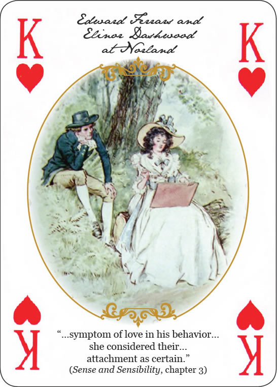 The card suits follow the main elements in Jane Austen’s novels: